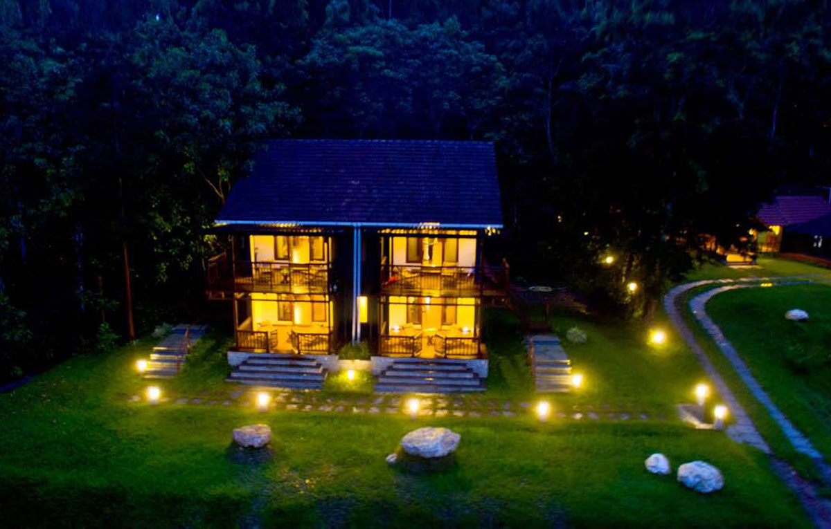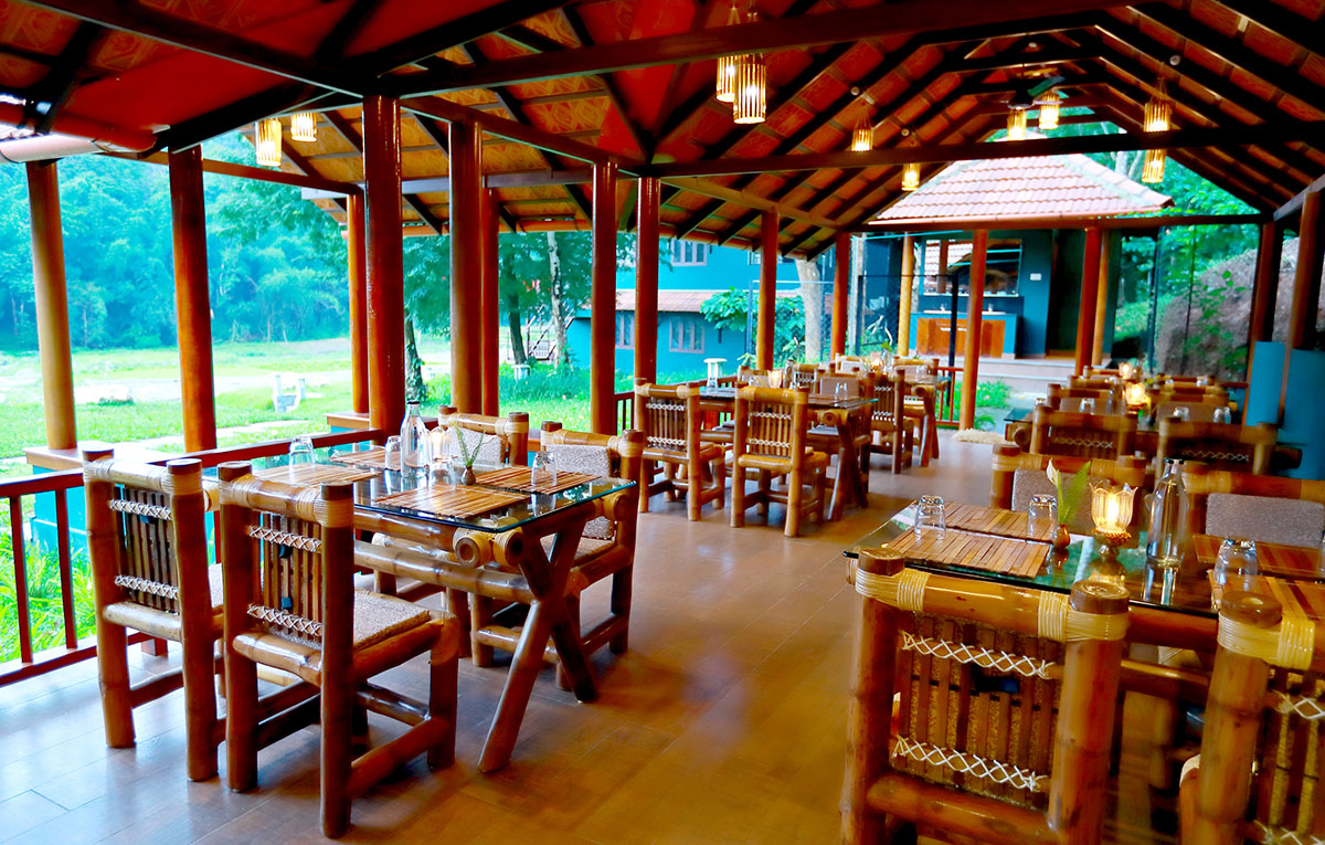Vayal Veedu is designed in the fashion of a plantation bungalow, with numerous acknowledgments to contemporary design and decor. Veedu in the local vernacular translates to a home. In more ways than one, this is truly a home as once most of humanity knew it enveloped in a poignant silence, punctuated by a symphony of bird calls, trumpeting elephants, the rustle of leaves awaits guests. The bungalow is set at the foot of a hillock and contains a complement of four exquisitely furnished suites, each with its exclusive private verandah looking out at the paddy fields and the forest beyond. An intimate dining area with a sloping tiled roof is situated beside the bungalow, furnished in bamboo with a splendid view of the surroundings.